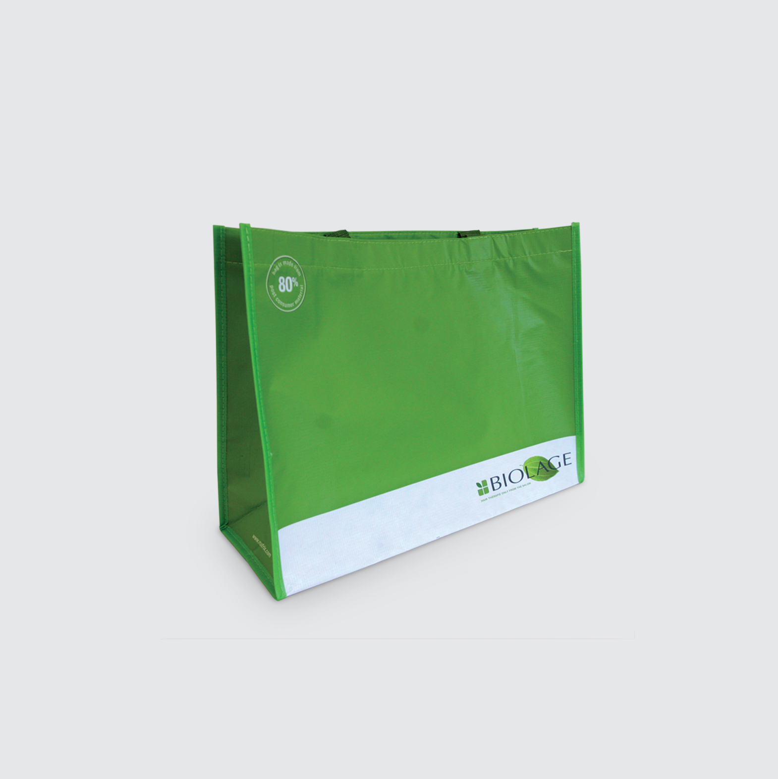 Fabricado con PET 80% reciclado de botellas de agua y refrescos y laminado OPP exterior